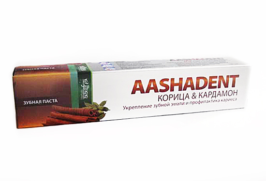 Зубная паста AASHADENT Корица-Кардамон эффективно очищает и укрепляет эмаль, снижает чувствительность, защищает от кариеса, обеспечивает антибактериальную защиту. Обладает нежным приятным вкусом, нейтрализует запах, придает дыханию свежесть.