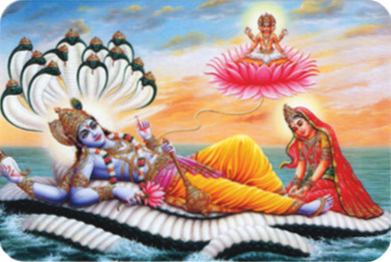 Наклейка "Вишну, Лакшми, Брахма, Шеша" (5 x 7,5 см)